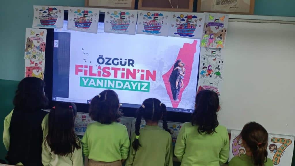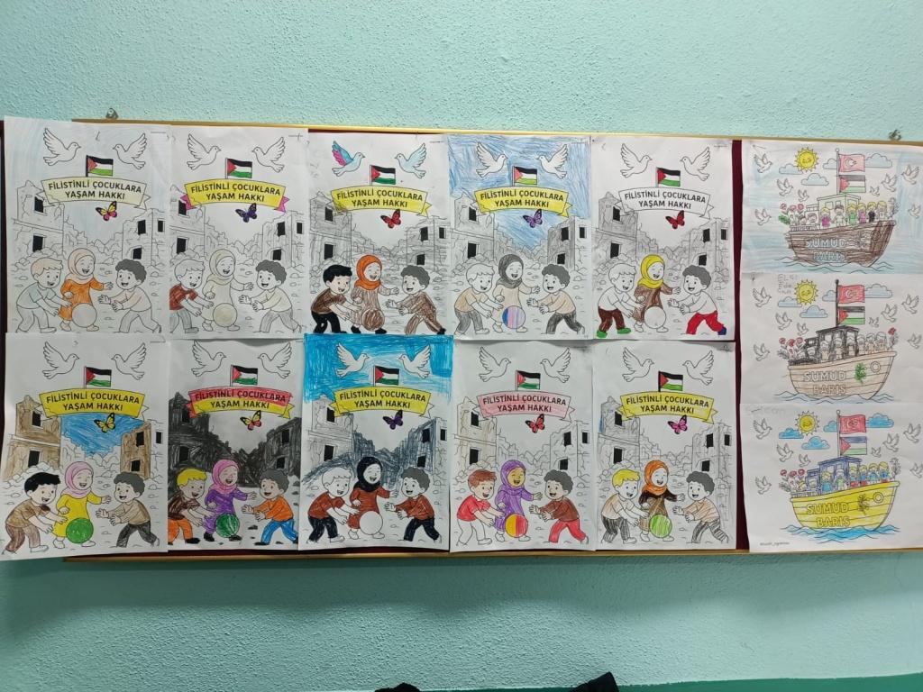07 Ekim 2025 tarihinde tüm okullarda eşzamanlı olarak gerçekleştirilen Filistin Farkındalık Etkinlikleri kapsamında, okulumuz öğrencileri tarafından çalışmalar düzenlenmiştir.